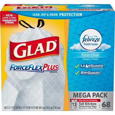 Glad Forceflex 13 Gallon Drawstring Trash Bags Low Density