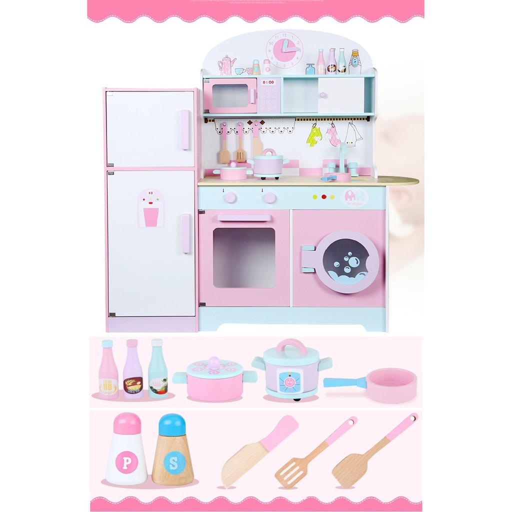 Pink House Kids Wooden Kitchen Set Toy Pretend Play Kitchen Food