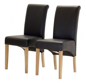 Dining Kitchen Chairs Brown Leather Solid Light Oak Legs Pack Of