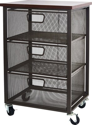 Easy 2 Go Wood Top Storage Unit With 3 Meshed Metal Drawers
