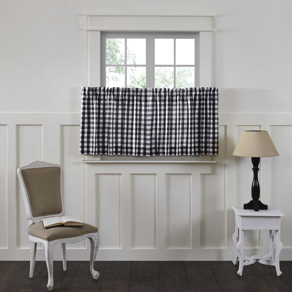 Antique White Black Farmhouse Kitchen Curtains Jenna Buffalo Check