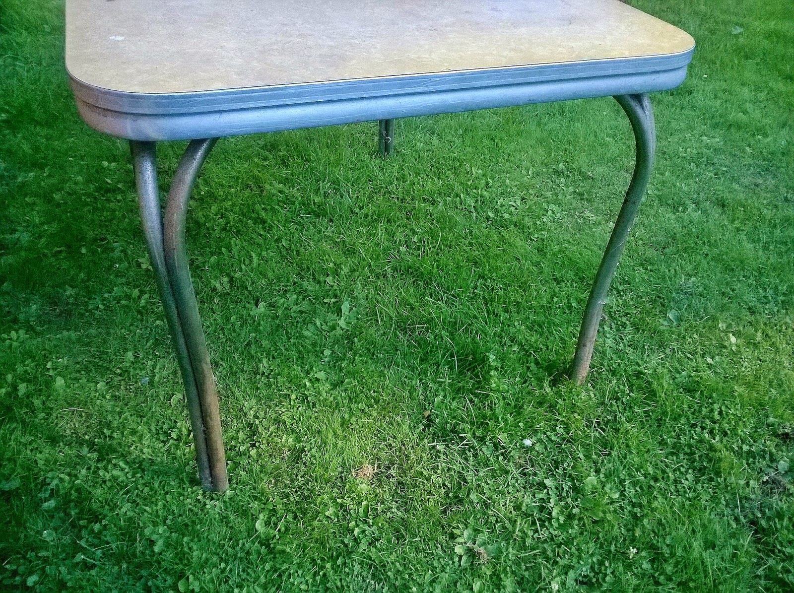 Mid century modern green formica kitchen table with hairpin legs and 1 extra leaf. How to restore 1950s chrome kitchen table chairs. You may find that many ebay listings are for a single antique chrome kitchen table while some others are for individual chairs. Gold steel table legs.